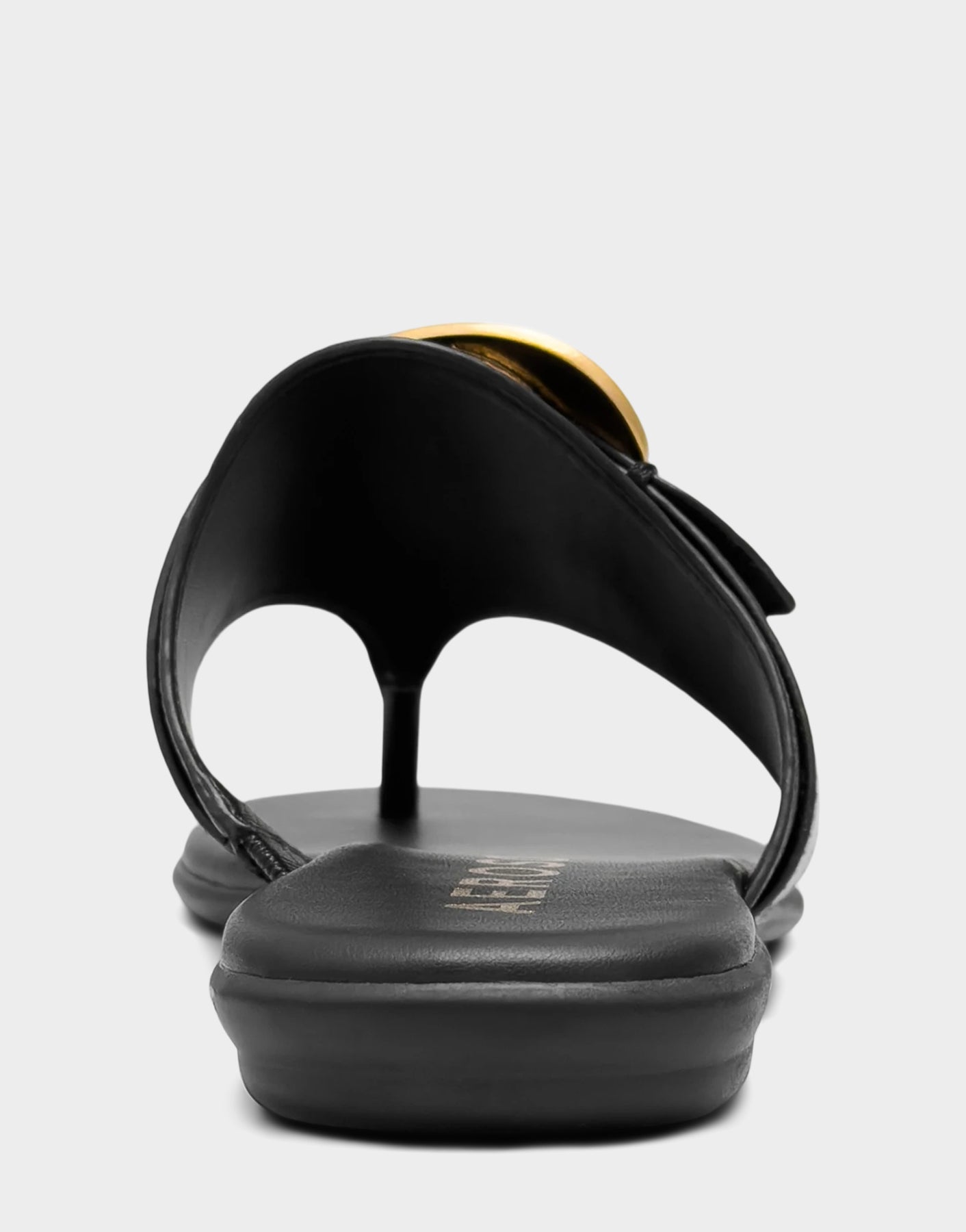 Comfortable Women's Flat Sandal in Black Faux Leather Back View